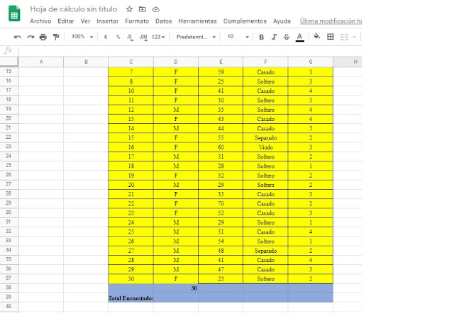 Estuvimos trabajando con excell y las hojas de cálculo de google y este fue mi resultado